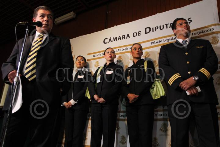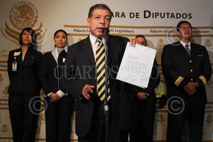 MÉXICO,D.F., 02MARZO2011.- Mario Di Constanzo, Diputado del PT, ofreció una conferencia ante los medios de comunicación junto a Trabajadores de la Aerolínea Mexicana, informaron que entregaron una carta a la cámara de diputados donde piden la renuncia de Javier Lozano, Secretario del Trabajo por su mala decisión en torno al grupo PC Capital el cual pretendía salvar de la deuda a la aerolínea y sin embargo hizo lo contrario. FOTO: ENRIQUE ORDÓÑEZ/CUARTOSCURO.COM