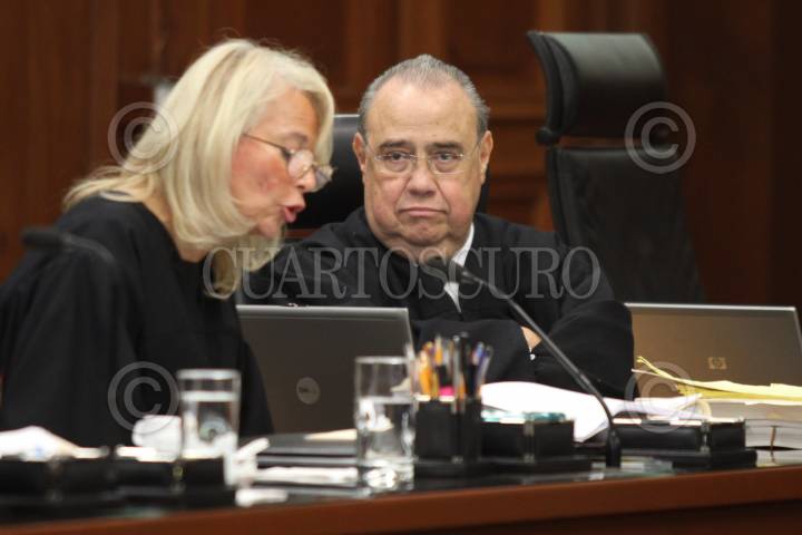 MÉXICO, D.F., 05AGOSTO2010.- Olga María del Carmen Sánchez Cordero y Sergio Valls Hernández, integrantes de la Suprema Corte de Justicia de la Nación, durante la sesión en la cual se declaró la constitucionalidad de los matrimonios entre personas del mismo sexo. FOTO: MOISÉS PABLO/CUARTOSCURO.COM