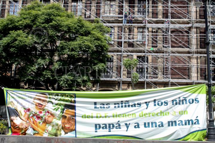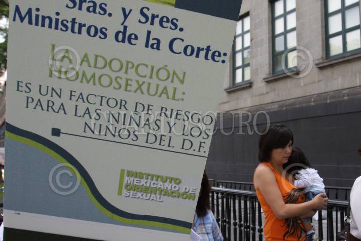 MÉXICO, D.F., 05AGOSTO2010.- Organizaciones afines a la comunidad lesbico-gay y el Instituto Mexicano de Orientación Sexual, colocaron mantas y repartieron volantes en los cuales defendían sus posturas en torno a la ratificación de la constitucionalidad de los matrimonios de personas del mismo sexo que permite las leyes en el Distrito Federal, esto afuera de la sede de la Suprema Corte de Justicia de la Nación en la calle de Pino Suárez en el Centro Histórico. FOTO: MOISÉS PABLO/CUARTOSCURO.COM