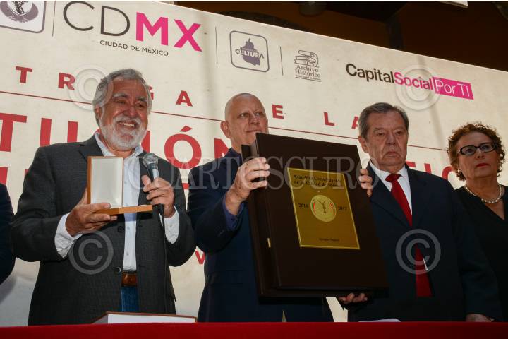 CIUDAD DE MÉXICO, 21ABRIL2017.- Alejandro Encinas Rodríguez, presidente de Mesa Directiva de la Asamblea Constituyente, Eduardo Vázquez Martin, Secretario de Cultura de la CDMX; Porfirio Muñoz Lerdo, diputado constituyente coordinador de la Conferencia de Armonización, en la entrega de la Constitución Política de la CDMX al Archivo Histórico de la CDMX. Además se hizo entrega del fondo documental que generó la Asamblea Constituyente durante la integración de de la Carta Magna capitalina. FOTO: MARIO JASSO /CUARTOSCURO.COM