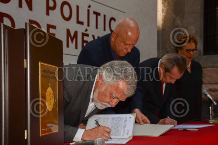 CIUDAD DE MÉXICO, 08FEBRERO2017.- Alejandro Encinas, presidente de la mesa directiva de la Asamblea Constituyente, y Leonel Luna, de la Comisión de Gobierno en la Asamblea Legislativa, encabezaron la entrega de la nueva Consitución de la Ciudad de México en la Asamblea Legislativa. FOTO: TERCERO DÍAZ /CUARTOSCURO.COM