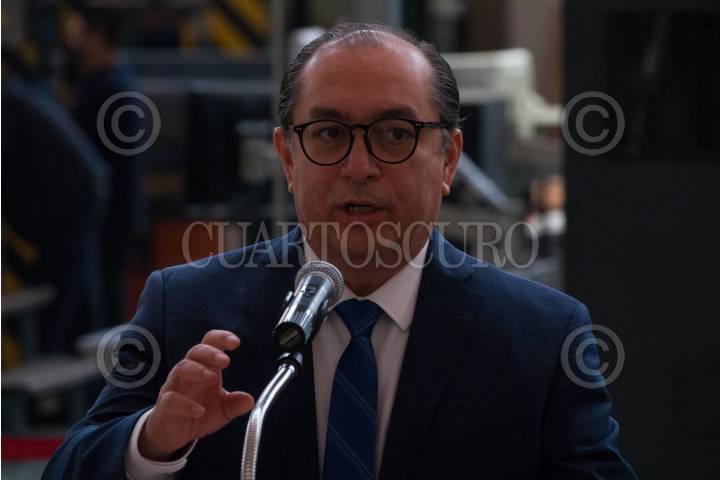 Abraham Ezequiel Zurita durante el inicio de impresión de boletas para la Consulta de Presupuesto Participativo 2022 en los Talleres Gráficos de México.
