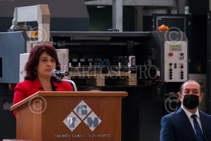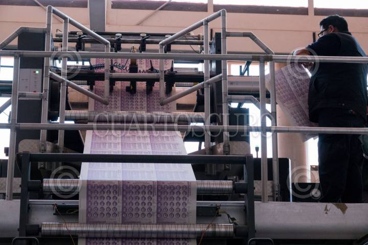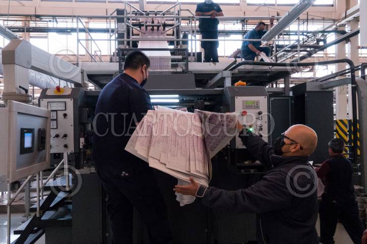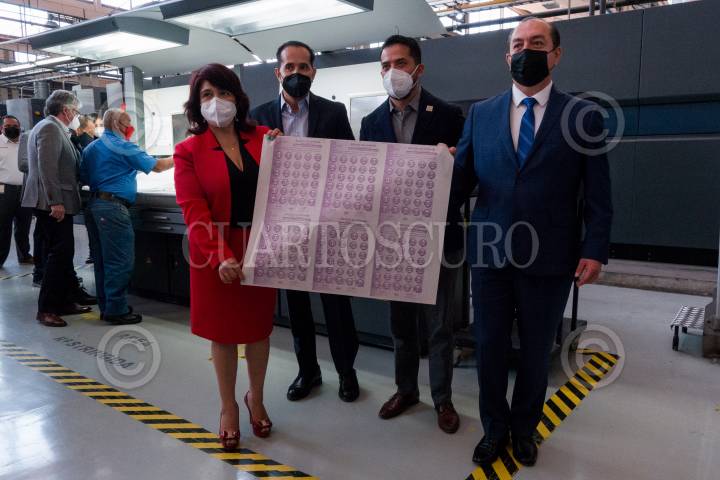 Inicio de la impresión de boletas para la Consulta de Presupuesto Participativo 2022 en los Talleres Gráficos de México.
