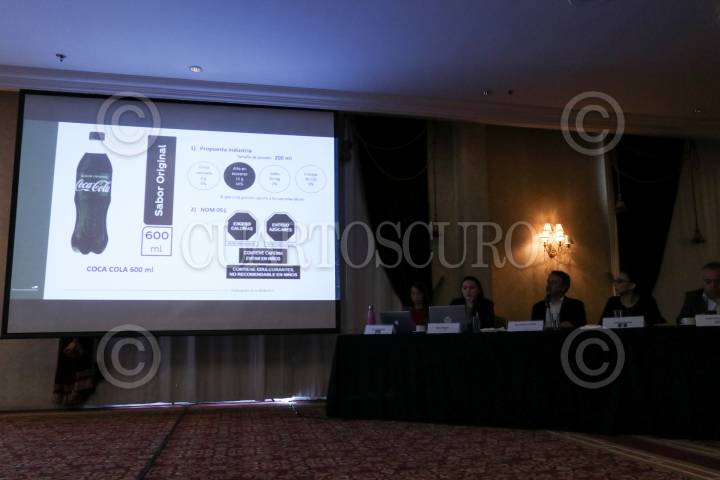 Katya García, representante de la organización Alianza por la Salud, y Alejandro Calvillo, representante de El Poder del Consumidor, dan detalles del etiquetado.