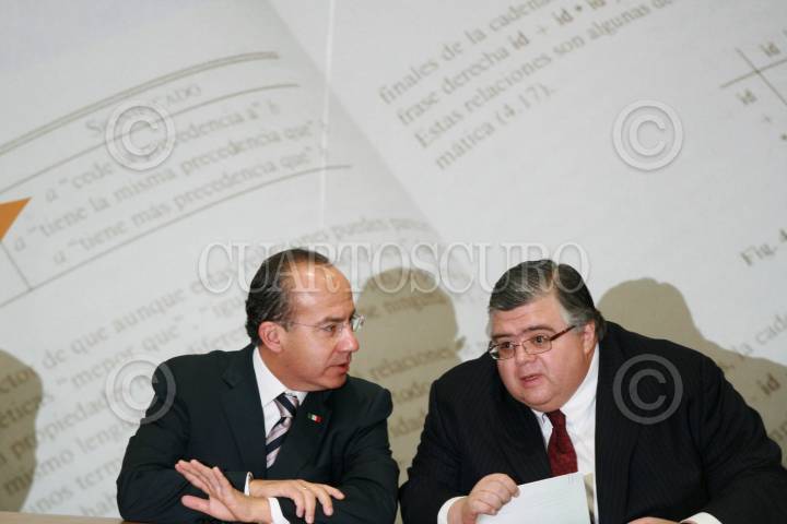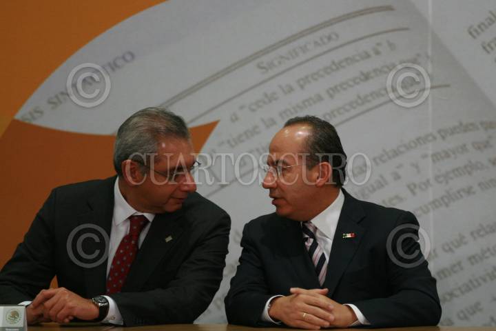 MÉXICO, D.F., 27ENERO2009.- El titular de la Función Pública, Salvador Vega junto con Felipe Calderon Hinojosa Presidente de México durante la Instalación del Consejo Nacional de Administración Contable realizada en el salòn Adolfo Lòpez Mateos de la Residencia Oficial de los Pinos. FOTO: SÁSHENKA GUTIÉRREZ/CUARTOSCURO.COM