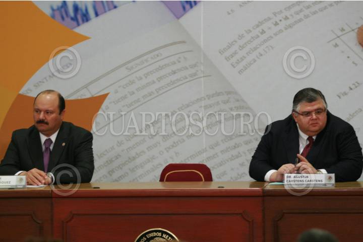 MÉXICO, D.F., 27ENERO2009.- César Horacio Duarte Jáquez Presidente de la Mesa Directiva de la Cámara de Diputados y el Secretario de Hacienda Agustín Carstens durante la Instalación del Consejo Nacional de Armonización Contable SHCP, realizada en el salón Adolfo López Mateos de la Residencia Oficial de los Pinos. FOTO: SÁSHENKA GUTIÉRREZ/CUARTOSCURO.COM