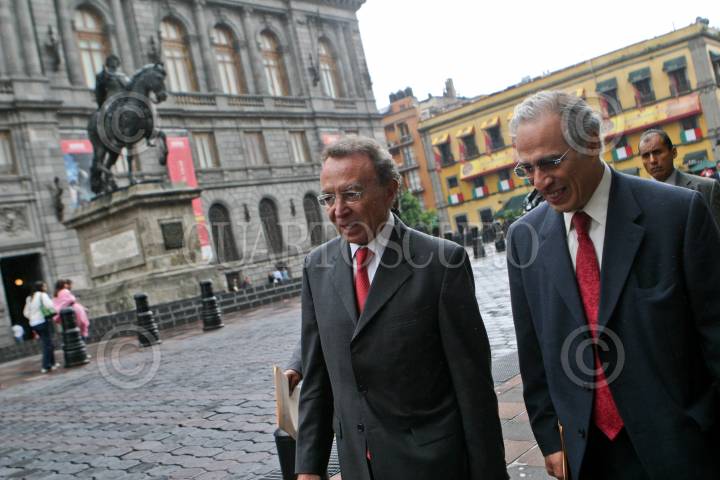 MÉXICO D.F., 25SEPTIEMBRE2008.- El presidente de la mesa directiva del Senado, Gustavo Madero y Guillermo Ortiz, gobernador del Banco de México a su llegada a la inauguración de la exposición Memoria Contante y Sonante: Exposición Numismática que se realizo en el Senado de la República. FOTO: RODOLFO ANGULO/CUARTOSCURO.COM