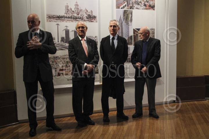 MÉXICO, D.F., 28SEPTIEMBRE2015.- El Museo Nacional de Arquitectura abre sus puertas al publico para disfrutar de la muestra, México, arquitectura contemporánea. Dicha muestra esta integrada por fotografías y planos de 56 obras realizadas por arquitectos mexicanos entre 2005 y 2015. En la imagen los arquitectos, Dominique Azam, Ernesto Alba, Bernardo Gómez-Pimienta y José Luis Cortes Delgado. FOTO: ISABEL MATEOS /CUARTOSCURO.COM