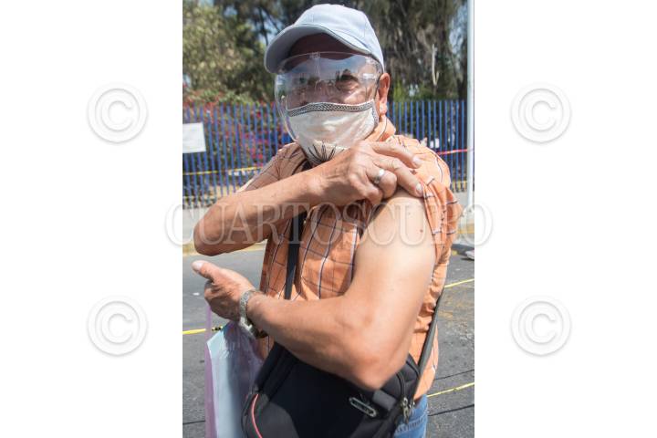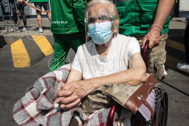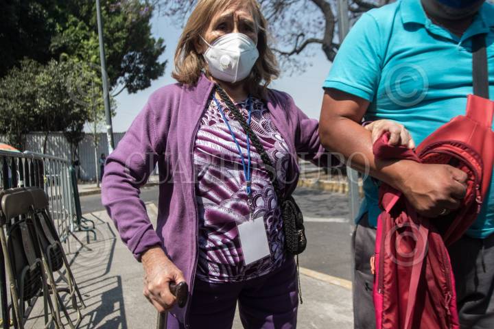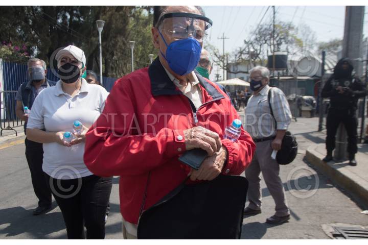 Adultos Mayores en la campaña de Vacunación Anti Covid 19, en la alcaldía de Iztacalco