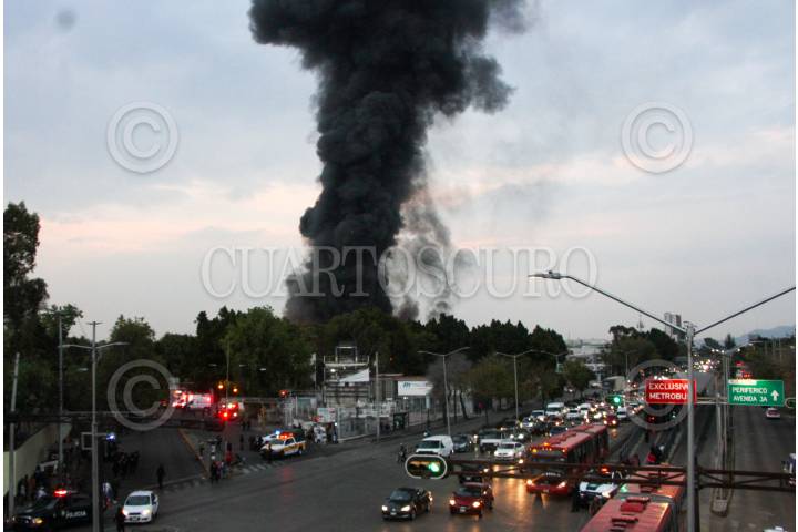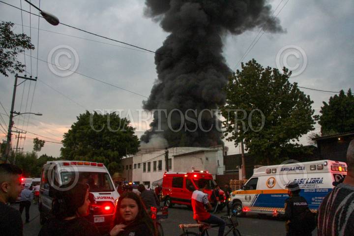 Un fuerte incendio se registró en unas bodegas de la colonia Coltongo, alcaldía Azcapotzalco.