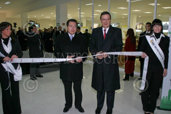 MÉXICO, D.F., 14ENERO2010.- Marcelo Ebrard, jefe de gobierno del Distrito Federal acompañado de Mario Delgado, secretario de Finanzas durante el corte de listón inaugural del Centro de Atención al Contribuyente que se ubica en la calle doctor Lavista No. 144 esquina Niños Héroes en la colonia Doctores. FOTO: RODOLFO ANGULO/CUARTOSCURO.COM