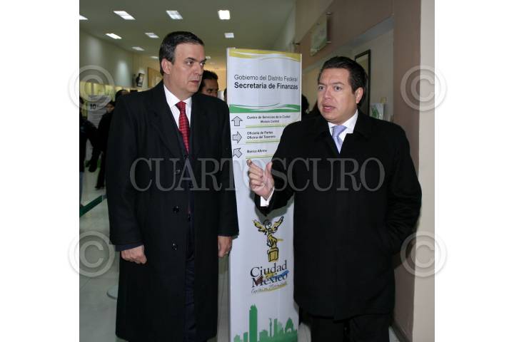 MÉXICO, D.F., 14ENERO2010.- Marcelo Ebrard, jefe de gobierno del Distrito Federal acompañado de Mario Delgado, secretario de Finanzas durante la inauguración del Centro de Atención al Contribuyente que se ubica en la calle doctor Lavista No. 144 esquina Niños Héroes en la colonia Doctores. FOTO: RODOLFO ANGULO/CUARTOSCURO.COM