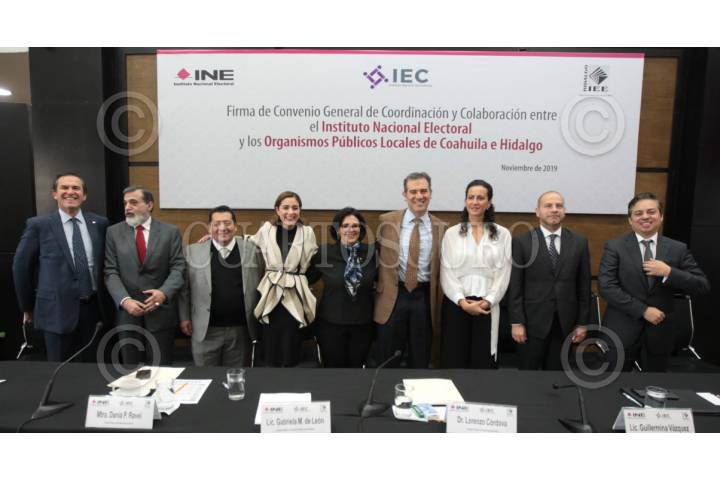 CIUDAD DE MÉXICO, 15NOVIEMBRE2019.- Lorenzo Córdova, consejero presidente del Instituto Nacional Electoral, encabezó la firma de Convenio de Colaboración con los Organismos Públicos Locales Electorales (OPLE) de Coahuila e Hidalgo. en la sede del Instituto. FOTO: INE /CUARTOSCURO.COM