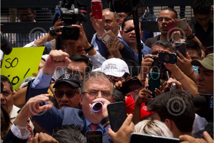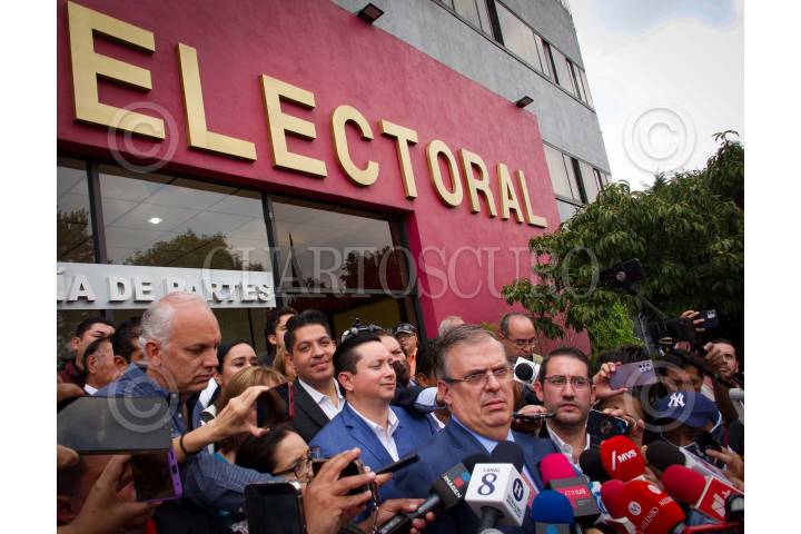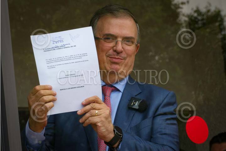 Marcelo Ebrard, acudió al INE para pagar una multa por supuestamente hablar sobre la seguridad del país.