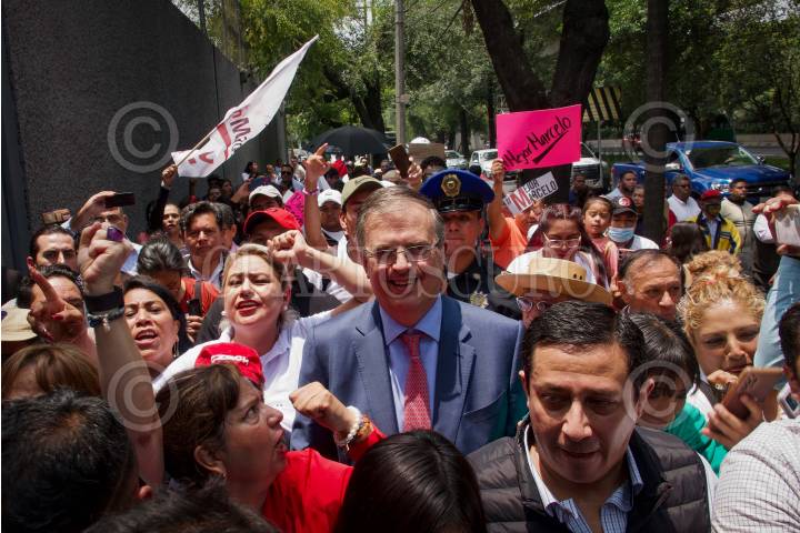 Marcelo Ebrard, junto a simpatizantes de a las afueras del INE en Tlalpan.