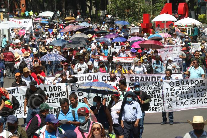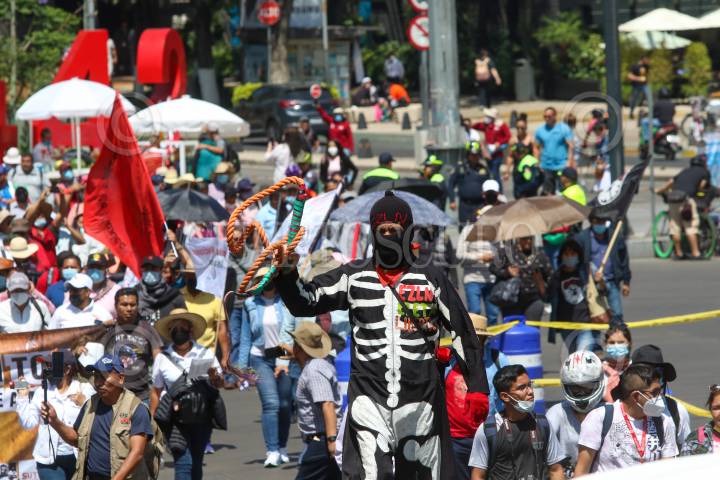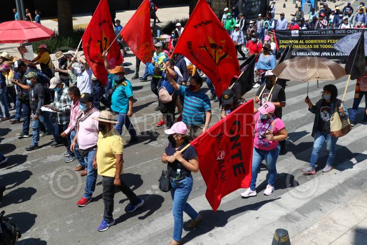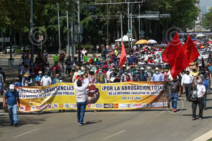 Maestros de la Coordinadora Nacional de Trabajadores de la Educación (CNTE) marcharon para conmemorar el Día del Maestro, una de sus principales consignas es la abrogación de la Reforma Educativa del Presidente Andrés Manuel López Obrador.