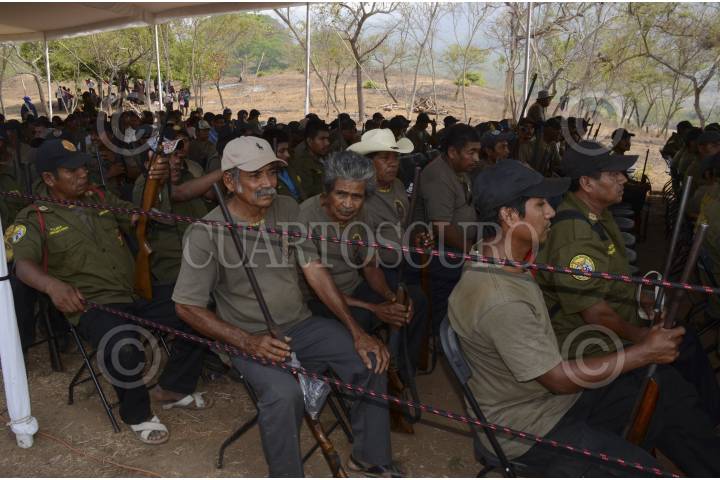 SAN LUIS ACATLÁN, GUERRERO, 16MAYO2013.- En territorio comunitario, del rancho de Armando Huerta del municipio de San Luis Acatlan el gobernador Ángel Aguirre Rivero reconvino a la dirigencias en pleno de la Coordinadora Regional de Autoridades Comunitarias (CRAC), para que eviten involucrarse en actividades políticas y se aboquen a trabajar sobre los principios que dieron origen a esa organización indígena integrada en 1995. Ante representantes de 130 comunidades de varios municipios de la región de La Montaña, el mandatario dijo que la Policía Comunitaria nació hace 17 años para proporcionar seguridad y justicia a los pueblos originarios, que por entonces eran azxotados por la violencia delincuencial. El llamado del gobernante se refirió, sin aludirlo directamente, al respaldo que la CRAC-PC ha ofrecido al Movimiento Popular de Guerrero (MPG), integrado mayoritariamente por la disidencia magisterial que, desde el 25 de febrero pasado, inició una campaña de resistencia en contra de la Reforma Educativa implementada por el gobierno de Enrique Peña Nieto y aprobada por mayoría en el Congreso de la Unión. FOTO: BERNANDINO HERNÁNDEZ /CUARTOSCURO.COM