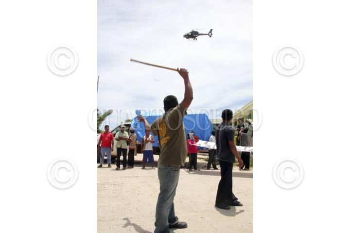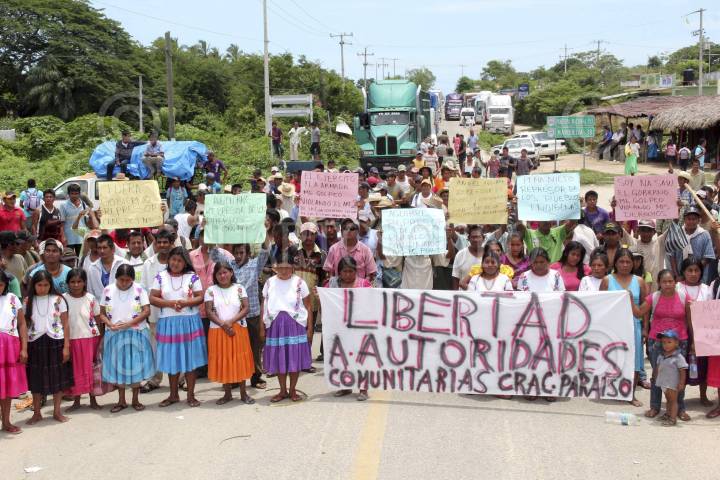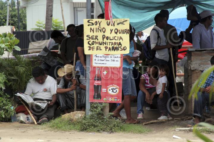 CRUZ GRANDE, GUERRERO, 28AGOSTO2013.- En la carretera federal 200 a la altura de Cruz Grande Guerrero se cumplen 24 horas de bloqueo por policías comunitarios, de la casa de justicia el paraíso, cabe señalar que estas actividades son derivadas después de que el día de ayer elementos del Ejército y Marina desarmaron a varios miembros del CRAC cuando estaban a punto de arribar a esta cabecera municipal. Los comunitarios no portaban armas, solo llevaban algunos garrotes y resorteras. Un helicóptero de la Policía Federal sobrevoló el área del bloqueo. FOTO: JOSÉ I. HERNÁNDEZ /CUARTOSCURO.COM