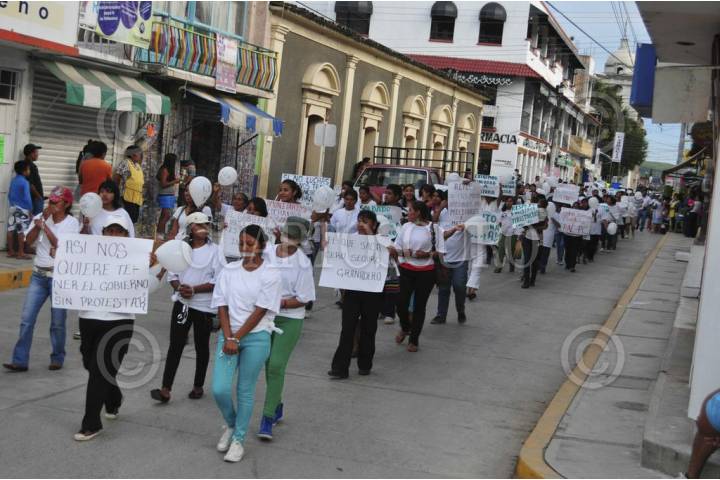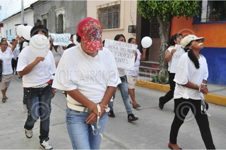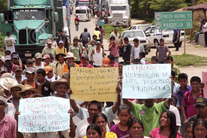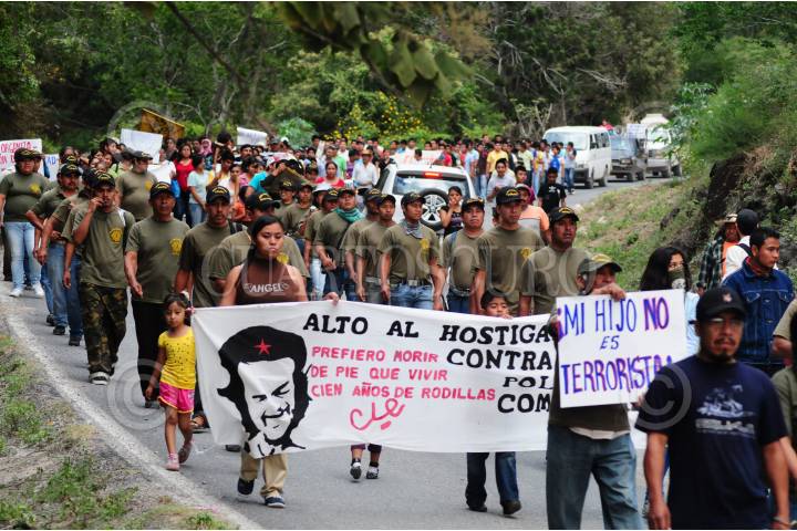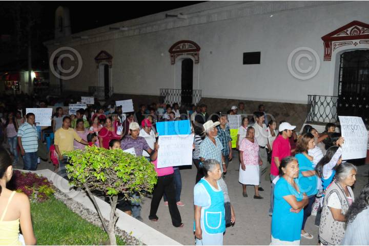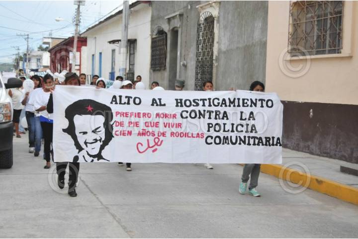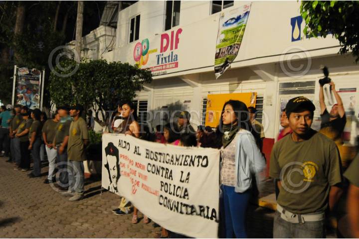 TIXTLA, GUERRERO, 30AGOSTO2013.- Integrantes de la coordinadora regional de autoridades comunitarias, salieron a las calles, para exigir cese el hostigamiento del ejército y de la marina contra la policía comunitaria, la marcha inicio a las 7 de la noche del santuario hacia el zócalo. FOTO: JOSÉ I. HERNÁNDEZ /CUARTOSCURO.COM