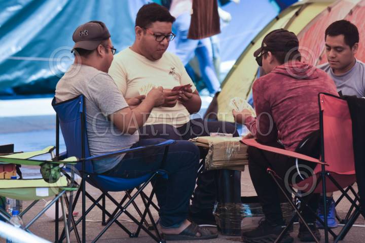 CIUDAD DE MÉXICO, 24MAYO2025.- Un grupo de maestros juegan con una baraja española mientras continúa el plantón de maestros de la Coordinadora Nacional de Trabajadores de la Educación (CNTE) en el zócalo capitalino y calles principales del centro histórico, instalado desde el pasado 15 de mayo. El magisterio exige al gobierno federal derogar la ley del ISSSTE de 2007; aumento salarial del 100 por ciento y homologación de sus prestaciones. FOTO: MARIO JASSO/CUARTOSCURO.COM