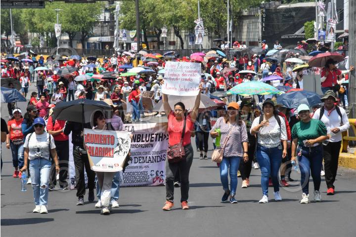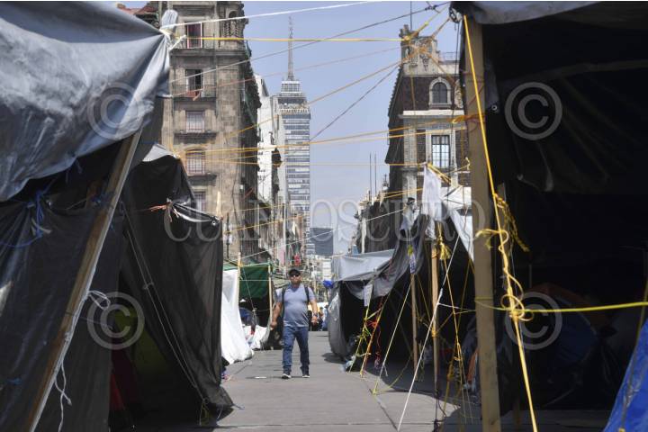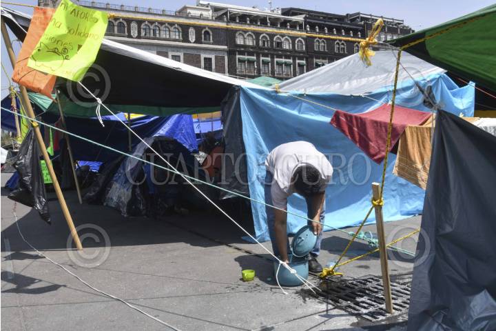 CIUDAD DE MÉXICO, 24MAYO2025.- Continúa el plantón de maestros de la Coordinadora Nacional de Trabajadores de la Educación (CNTE) en el zócalo capitalino y calles principales del centro histórico que ha estado instalado desde el pasado 15 de mayo. El magisterio exige al gobierno federal derogar la ley del ISSSTE de 2007; aumento salarial del 100 por ciento y homologación de sus prestaciones. FOTO: MARIO JASSO/CUARTOSCURO.COM