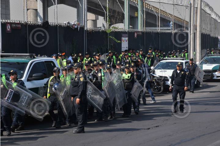 CIUDAD DE MÉXICO, 24MAYO2024.- Elementos de la Secretaria de Seguridad Ciudadana (SSC) resguardan las inmediaciones de la Terminal 1 del Aeropuerto Internacional de la Ciudad de México (AICM) en donde se prevéa llegada de maestros de la Coordinadora Nacional de Trabajadores de la Educación (CNTE) para protestar en exigencia de un aumento salarial. FOTO: MARIO JASSO/CUARTOSCURO.COM