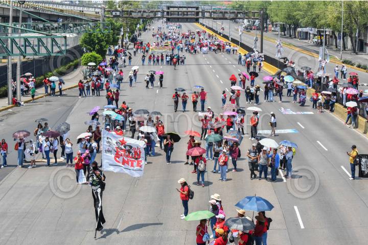 CIUDAD DE MÉXICO, 23MAYO2024.- Maestros de la Coordinadora Nacional de Trabajadores de la Educación (CNTE) continúan con paro laboral y plantón en el Zócalo capitalino en defensa de sus peticiones en materia de aumento salarial. Como parte de su jornada llamaron a protestar en los Comités Ejecutivos Nacionales de los partidos políticos: PAN, PRI, PRD, Morena y Movimiento Ciudadano. FOTO: MARIO JASSO/CUARTOSCURO.COM