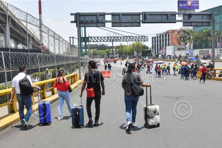 CIUDAD DE MÉXICO, 24MAYO2024.- Usuarios retrasaron su llegada a la terminal 1 del Aeropuerto Internacional de la Ciudad de México (AICM) luego de la protesta que maestros de la Coordinadora Nacional de Trabajadores de la Educación (CNTE) realizaron por más de dos horas. FOTO: MARIO JASSO/CUARTOSCURO.COM