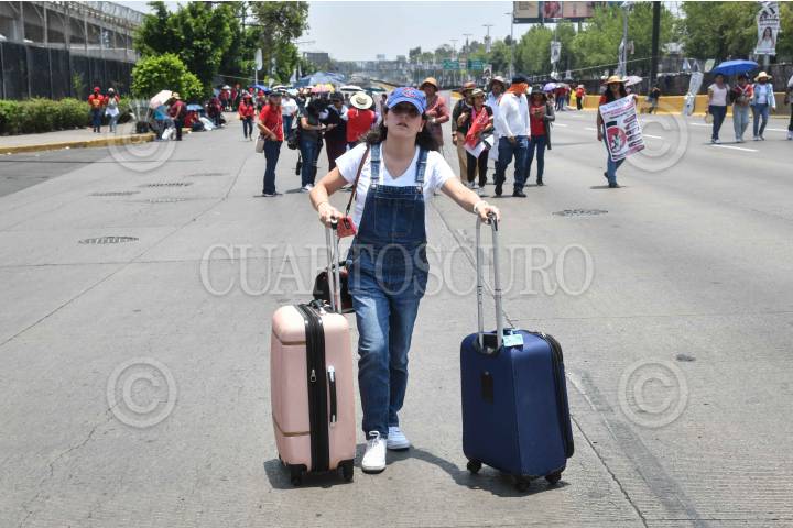 CIUDAD DE MÉXICO, 24MAYO2024.- Después de dos horas maestros de la Coordinadora Nacional de Trabajadores de la Educación (CNTE) liberaron los accesos de la Terminal 1 del Aeropuerto Internacional de la Ciudad de México (AICM) en donde exigieron un aumento salarial. FOTO: MARIO JASSO/CUARTOSCURO.COM