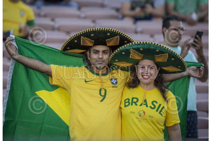 PASADENA, CALIFORNIA, 05JUNIO2016.- El día de ayer aficionados mexicanos apoyando a la verdeamarela durante el partido entre la selección de Brasil y su similar de Ecuador, realizado en el estadio Rose Bowl de Pasadena, California, correspendiente a la fase de grupos de la Copa América Centenario 2016.Marcador Final: Brasil 0, Ecuador. FOTO: CHRISTIAN SERNA /CUARTOSCURO.COM