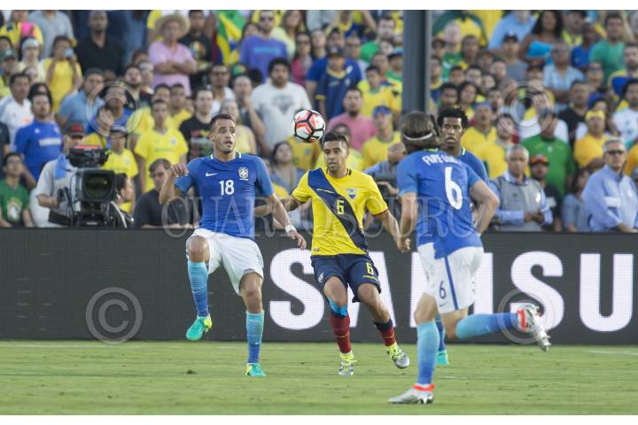 PASADENA, CALIFORNIA, 05JUNIO2016.- El día de ayer Fidel Martínez disputa la bola con Lucas Lima durante el partido entre la selección de Brasil y su similar de Ecuador, realizado en el estadio Rose Bowl de Pasadena, California, corres pendiente a la fase de grupos de la Copa América Centenario 2016.Marcador Final: Brasil 0, Ecuador. FOTO: CHRISTIAN SERNA /CUARTOSCURO.COM