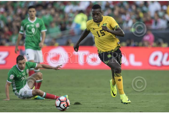 PASADENA CALIFORNIA, ESTADOS UNIDOS, 09JUNIO2016.- Je-Vaughn Watson conduce el balón durante el encuentro entre la Selección de México y su similar de Jamaica, realizado en el estadio Rose Bowl, correspondiente a la segunda fecha del grupo C de la Copa América Centenario. FOTO: CHRISTIAN SERNA /CUARTOSCURO.COM
