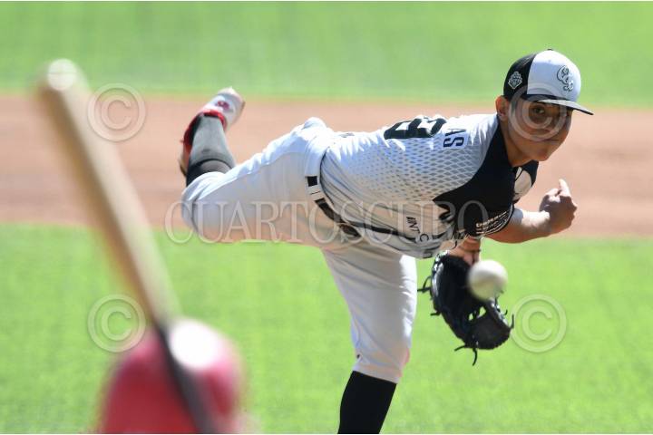 El lanzador Ángel Barrera (Equipo Nelson Barrera) durante el juego final de la serie en contra de la novena del equipo de José Luis Sandoval, durante un encuentro de la Copa Juntos por México.