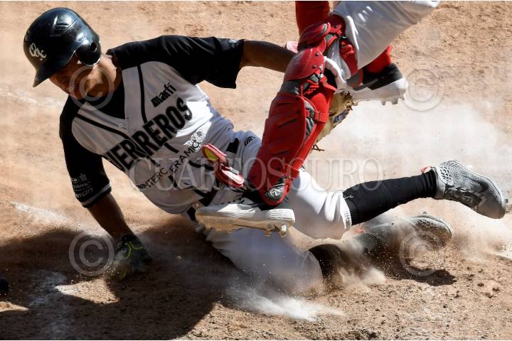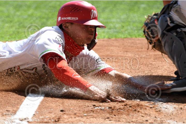 El jugador de los Guerreros de Oaxaca, Christian Lucero, anota una carrera en el encuentro.