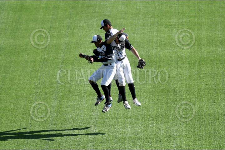 El equipo de Nelson Barrera (Guerreros de Oaxaca) festeja una carrera, dentro de los juego de la Copa Juntos por México.