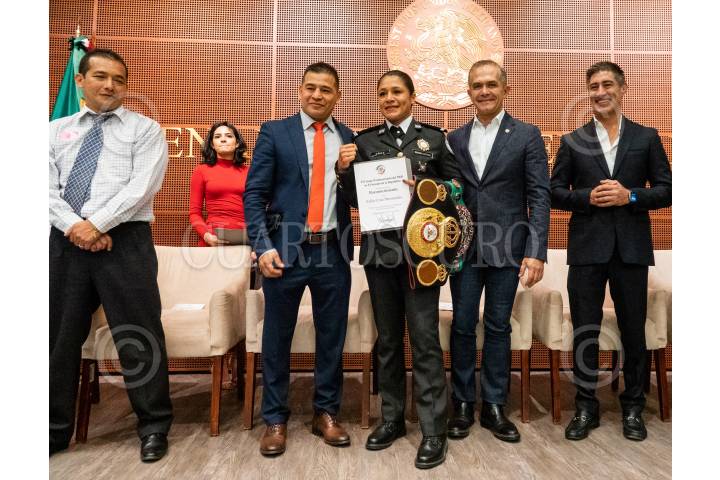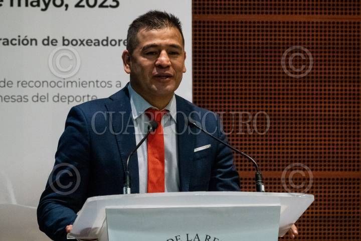 El ex campeón mundial peso Súper Gallo, Jorge Lacierva Medina durante la entrega de reconocimientos a campeonas y campeones en el Senado de la República.