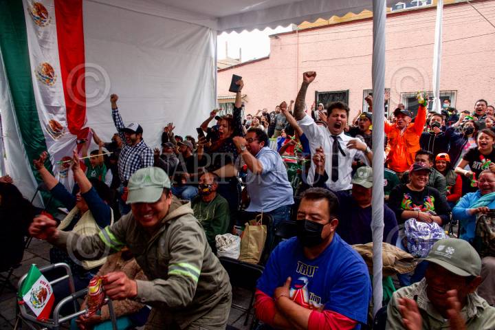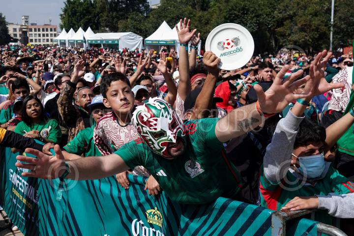 Aficionados acudieron al monumento a la Revolución para apoyar a la selección mexicana en su debut en la copa del mundo 2022.