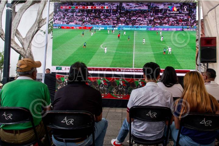 Aficionadas reunidos en la Plaza Benito Juárez durante el encuentro México vs Arabia Saudita.