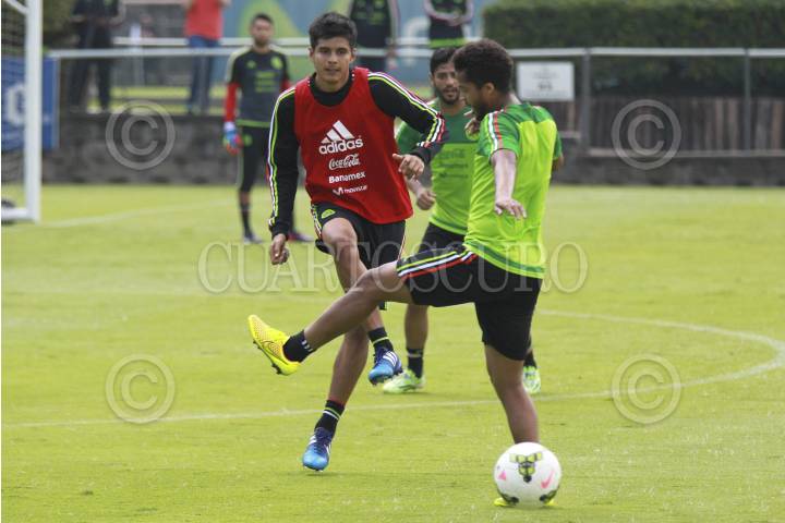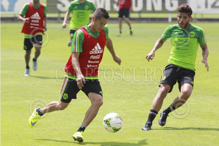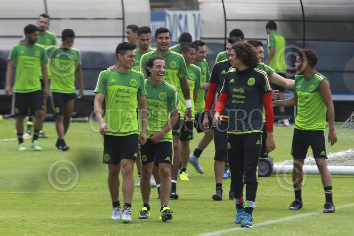 MÉXICO, D.F., 19JUNIO2015.- Entrenamiento de la Selección Mexicana de Fútbol que disputará la Copa Oro 2015. La concentración se realizó en el Centro de Alto Rendimiento, al que asitieron jugadores como Carlos Vela, Andrés Guardado, Guillermo Ochoa, Jonathan dos Santos, Giovani dos Santos, Francisco Javier Rodríguez, entre otros, dirigidos por el auxiliar técnico, Santiago Baños, debido a que el entrenador Miguel Herrera está en Chile por la Copa América. FOTO: CUARTOSCURO.COM