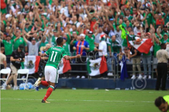 SAN DIEGO, CALIFORNIA, 09JULIO2017.- Acciones del partido de Selección Mexicana de fútbol ante su similar de El Salvador realizado en el estadio Qualcomm, correspondiente al grupo 1 de la Copa Oro, donde el marcador fue de 3-1 a favor de México. En la imagen, Elías Hernández festeja el gol anotado. FOTO: CHRISTIAN SERNA/CUARTOSCURO.COM