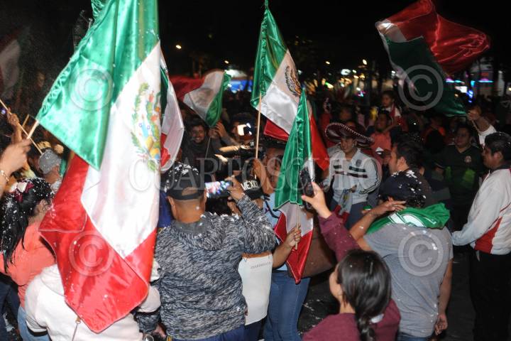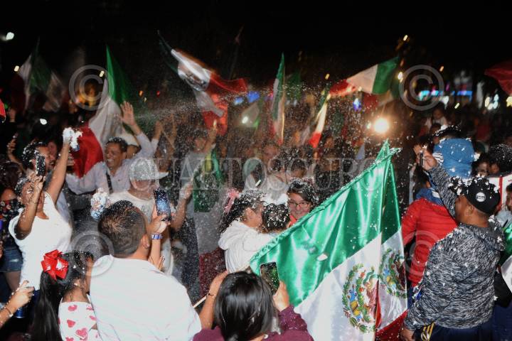 CIUDAD DE MÉXICO., 08JULIO2019.- Festejos de aficionados al futbol mexicano, ante el triunfo de la selección en la COPA ORO contra Estados Unidos, en el Ángel de la Independencia. FOTO: LUIS CARBAYO /CUARTOSCURO.COM