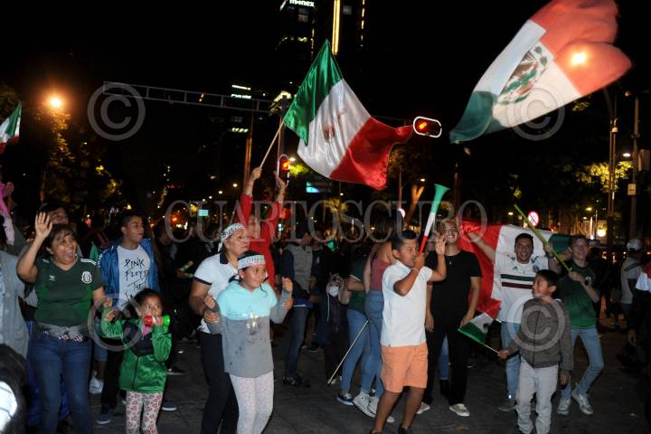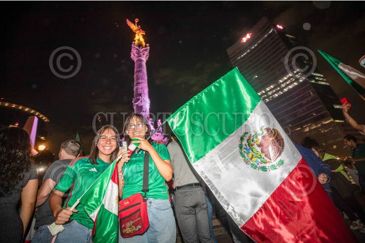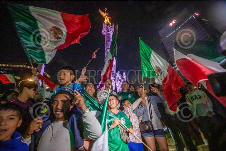 Aficionados celebraron que la Selección Mexicana de fútbol obtuvo la Copa de Oro ante Panamá, en el Ángel de la Independencia.