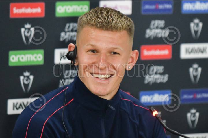 CIUDAD DE MÉXICO, 31MAYO2025.- Mateusz Bogusz, mediocampista del Cruz Azul, durante su participación en el día de medios de la final de la Copa de Campeones de la Concacaf 2025 entre Cruz Azul y Whitecaps, que se llevará a cabo mañana a las 19 horas en el Estadio Olímpico Universitario. FOTO: MARIO JASSO/CUARTOSCURO.COM