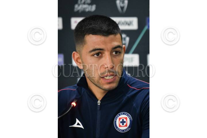 CIUDAD DE MÉXICO, 31MAYO2025.- Carlos Rotondi, delantero del Cruz Azul, durante su participación en el día de medios de la final de la Copa de Campeones de la Concacaf 2025 entre Cruz Azul y Whitecaps, que se llevará a cabo mañana a las 19 horas en el Estadio Olímpico Universitario. FOTO: MARIO JASSO/CUARTOSCURO.COM