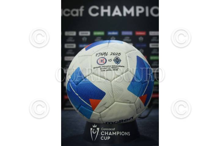 CIUDAD DE MÉXICO, 31MAYO2025.- Balón oficial de la Copa de Campeones de la Concacaf 2025 que se disputará entre Cruz Azul y Whitecaps, mañana a las 19 horas en el Estadio Olímpico Universitario. FOTO: MARIO JASSO/CUARTOSCURO.COM