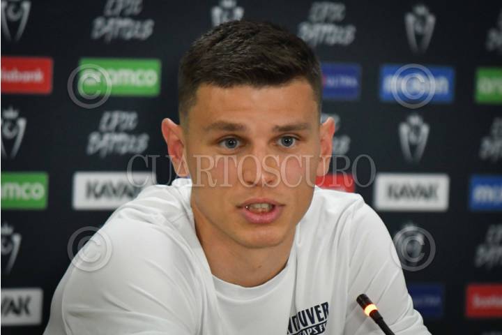 CIUDAD DE MÉXICO, 31MAYO2025.- Ranko Veselinović, defensa del Vancouver Whitecaps, durante su participación en el día de medios de la final de la Copa de Campeones de la Concacaf 2025 entre Cruz Azul y Whitecaps, que se llevará a cabo mañana a las 19 horas en el Estadio Olímpico Universitario. FOTO: MARIO JASSO/CUARTOSCURO.COM
