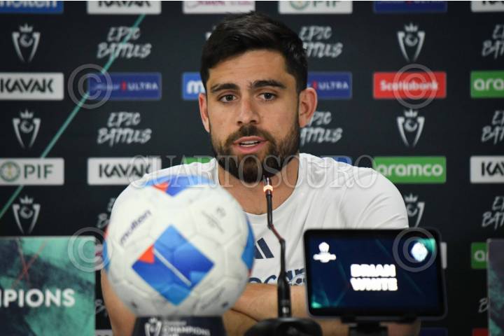 CIUDAD DE MÉXICO, 31MAYO2025.- Brian White, delantero del Vancouver Whitecaps, durante su participación en el día de medios de la final de la Copa de Campeones de la Concacaf 2025 entre Cruz Azul y Whitecaps, que se llevará a cabo mañana a las 19 horas en el Estadio Olímpico Universitario. FOTO: MARIO JASSO/CUARTOSCURO.COM