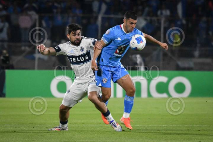 CIUDAD DE MÉXICO, 01JUNIO2025.- Erik Lira, medio campista del Cruz Azul, frente a la marca de Brian White, delantero de Whitecaps, Final de la Copa de Campeones de la Concacaf 2025 entre Cruz Azul y Whitecaps, llevado a cabo en el Estadio Olímpico Universitario. Marcador final: Cruz Azul (5) - (0) Whitecaps. FOTO: MARIO JASSO/CUARTOSCURO.COM