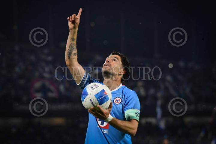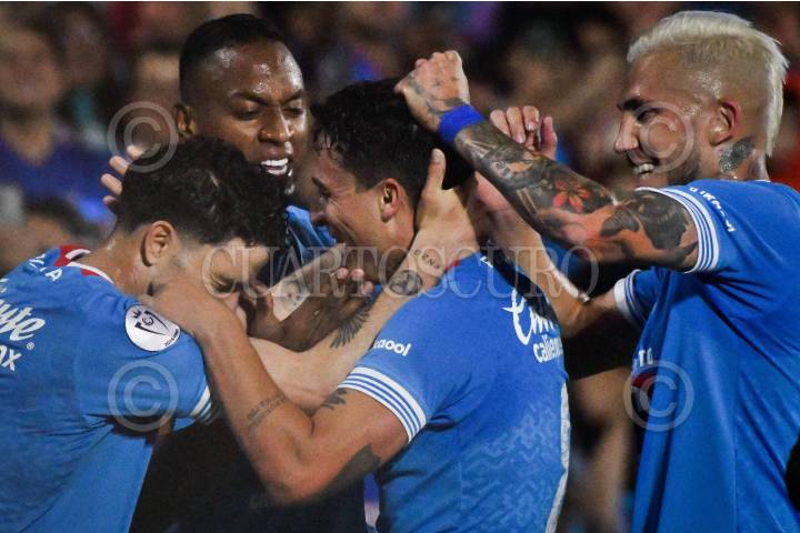 CIUDAD DE MÉXICO, 01JUNIO2025.- Final de la Copa de Campeones de la Concacaf 2025 entre Cruz Azul y Whitecaps, llevado a cabo en el Estadio Olímpico Universitario. En la imagen, Ángel Sepúlveda, delantero del Cruz Azul, festeja su anotación. Marcador final: Cruz Azul (5) - (0) Whitecaps. FOTO: MARIO JASSO/CUARTOSCURO.COM