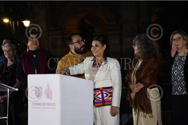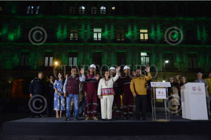 CIUDAD DE MÉXICO, 11JUNIO2025.- Clara Burgada, Jefa de Gobierno, encabezó el encendido de edificios de color verde este como cuenta regresiva a un año del inicio de la Copa del Mundo 2026, en donde nuestro país será sede de algunos partidos, como el juego inaugural. FOTO: GOBIERNO DE LA CIUDAD DE MÉXICO/CUARTOSCURO.COM